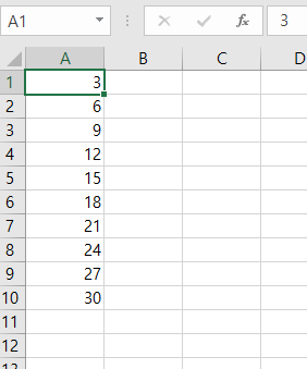 일단 바탕화면에서 엑셀파일 하나를 만들어주시고 이름을 practice.xlsx라고 만들어줍니다. 코드를 그대로 쓰시려면 파일명을 똑같이 써줘야 합니다. 파일을 실행시켜 sheet1의 시트명을 "3단"으로 바꿔줍니다. 시트안에는 A1:A10까지 구구단 3단을 써주겠습니다. 다 되셨으면 저장하시고 파일을 꺼주시면 됩니다.